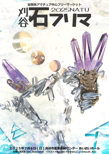 鉱物好きが集まるアマチュア中心のフリーマーケットで、天然石や鉱物標本、アクセサリーなどが並び、会場ならではの交流も楽しめるイベントです。プロからアマチュアまで多彩な出展があり、石にまつわるアイテムを気軽に見られる充実の内容となっています。石活を広げたい人にも嬉しいラインナップで、ゆっくり巡りながらお気に入りを探せる雰囲気が魅力です。