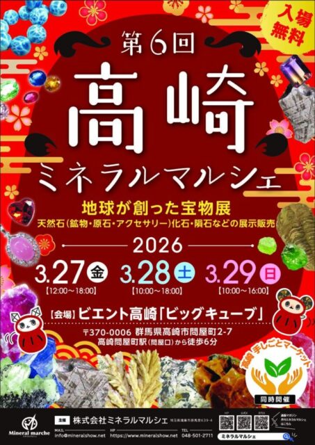 第6回 高崎ミネラルマルシェ|2026年3月27日(金)〜3月29日(日)ビエント高崎「ビッグキューブ」で天然石・化石・隕石・ジュエリーの展示販売会